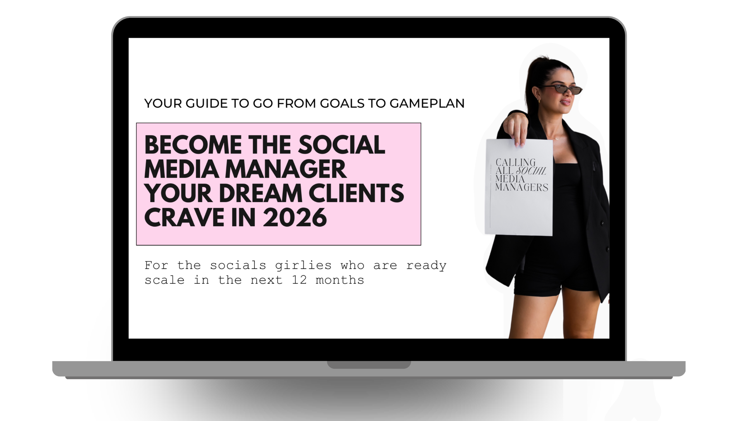 I have designed a full suite inside this free goodies vault specifically for social media managers looking to grow their business. Whether you're dreaming of swapping your 9-5 for a beachside office, or you're ready to scale your existing social media business to consistent $10k months – these powerful resources are your first step to making it happen.